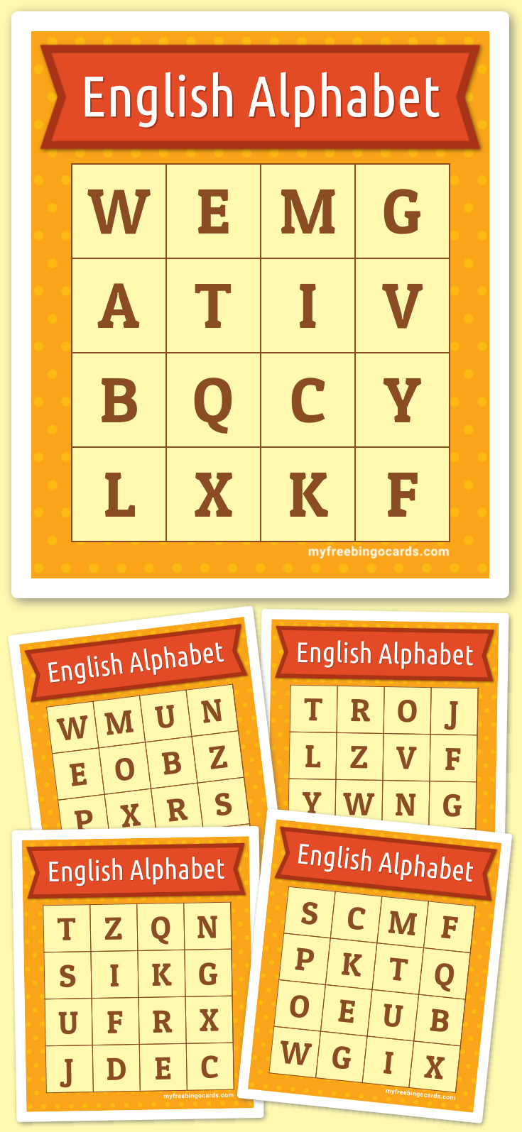 These boards are played just like bingo. Get 4 in a row to get bingo! Choose from uppercase or lowercase letters, as well . This alphabet bingo game is fun for preschoolers who are learning to recognize their letters. Alphabet bingo directions · cut out the alphabet cards.